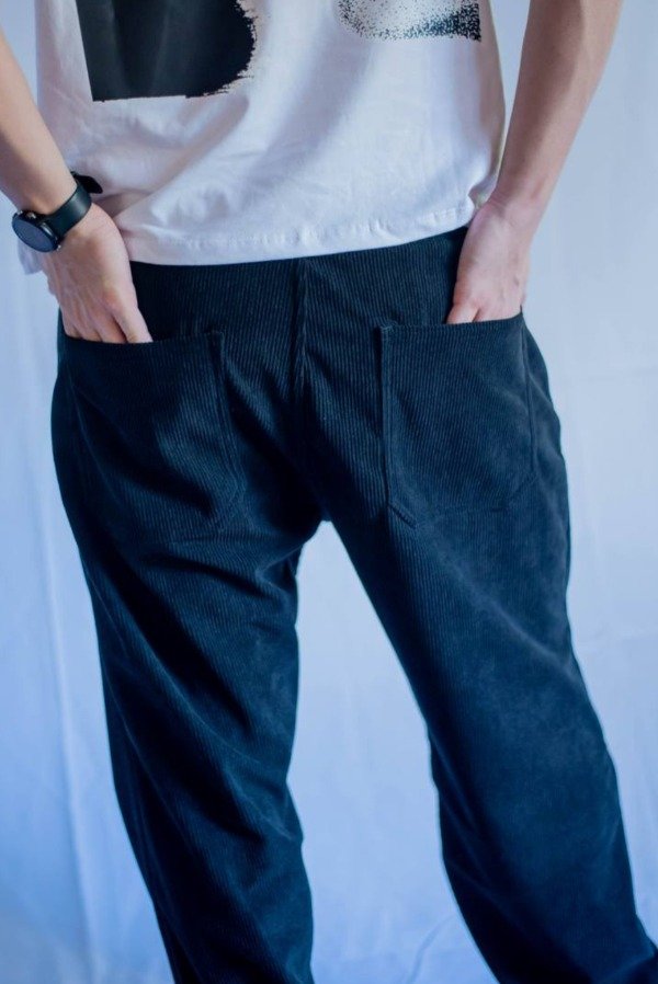 Pantalón Negro de corderoy suave con calce cómodo y silueta actual.